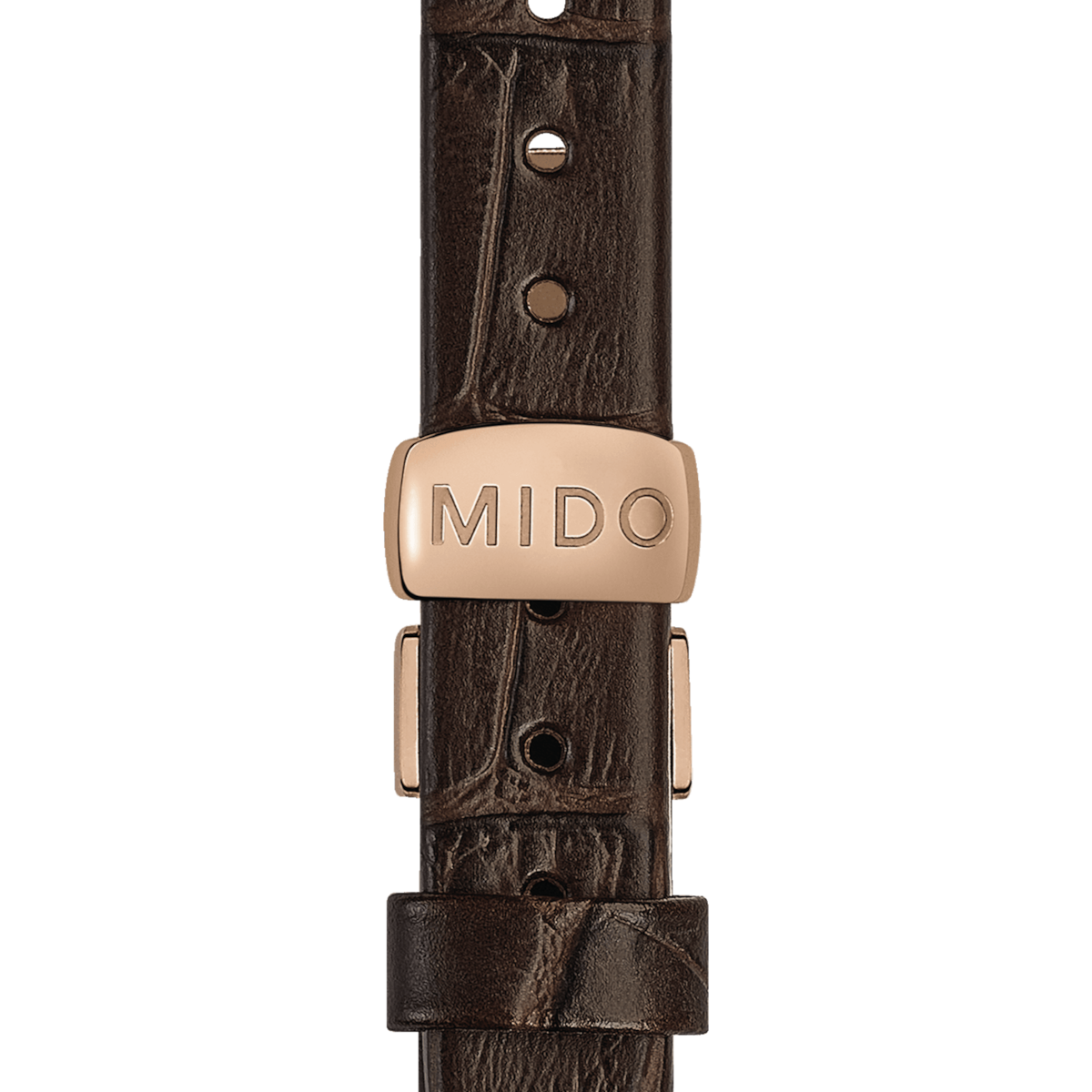 Mido Baroncelli Lady Twenty Five Rhodium Dial with Diamond on brown leather strap