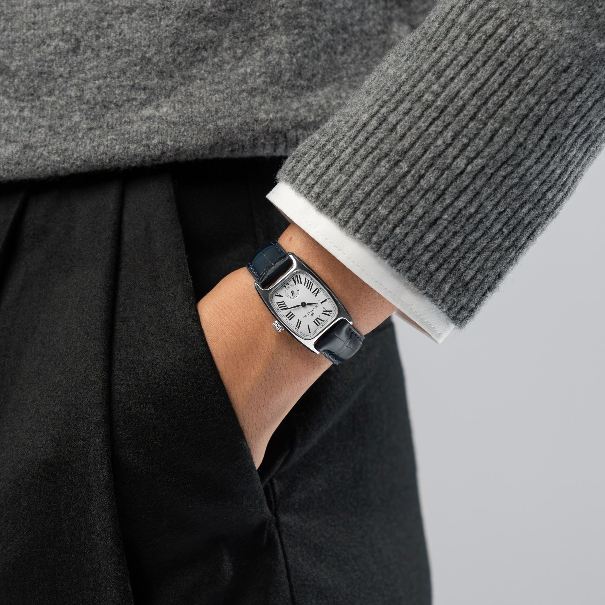 Art Deco meets American Classic style in the new Hamilton Boulton. With its distinctive case shape, the Boulton has been a mainstay of the Hamilton collection since it first appeared in 1940. Reimagined for the twenty-first century, the Boulton offers the Hamilton American Classic look that never goes out of style.