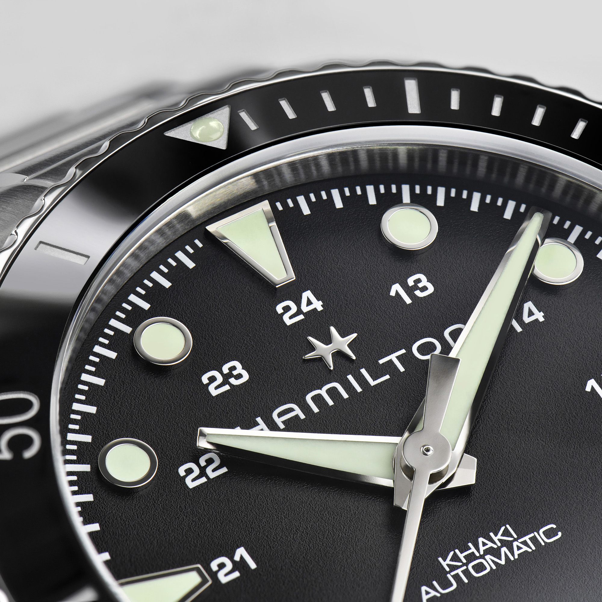 Hamilton Khaki Navy Scuba Auto Black Dial Black Bezel on Bracelet 43mm