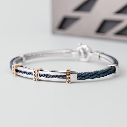 Baraka 316L Bracelet -Steel Blue PVD/ RG/ Black Diamonds