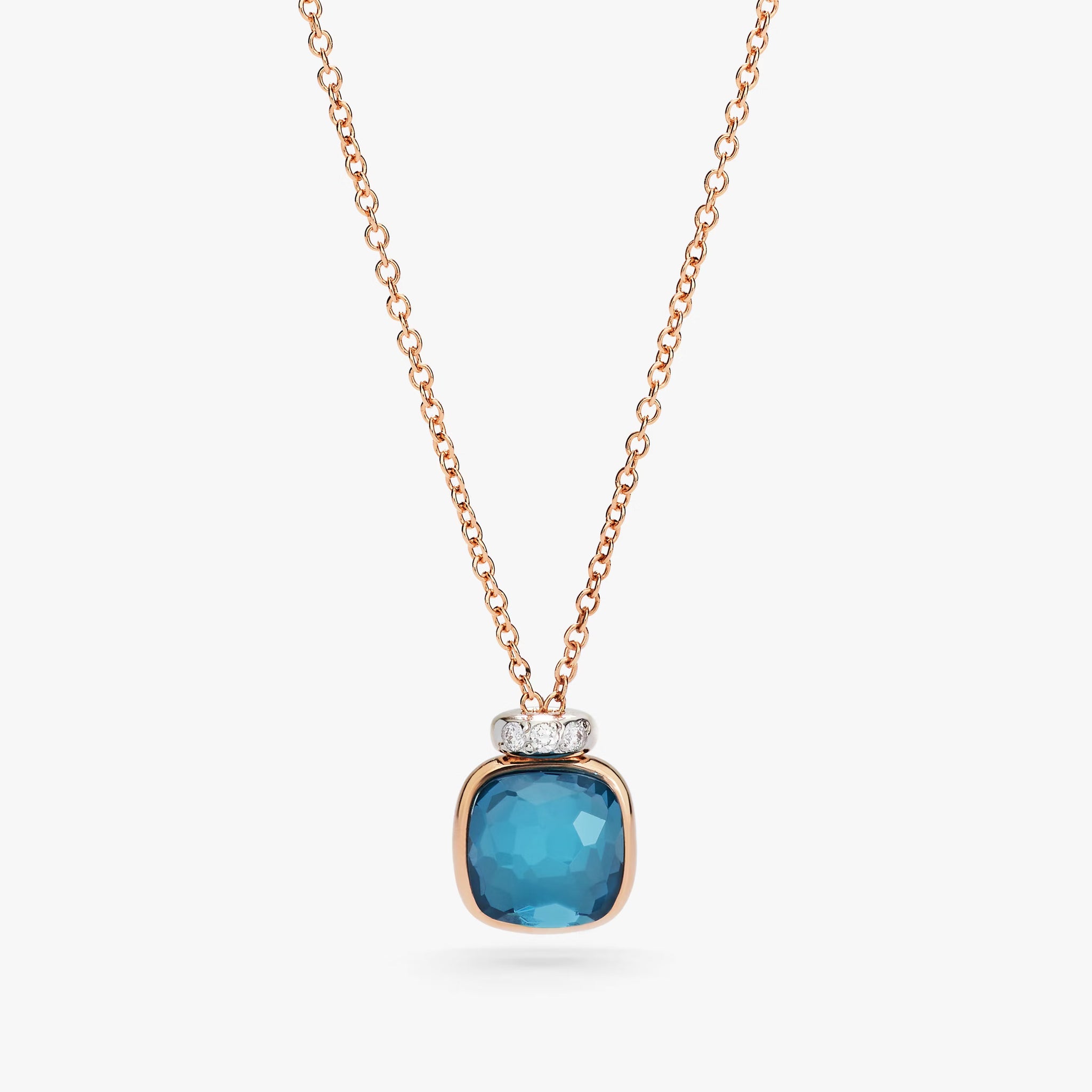 Pomellato Nudo Mini Necklace with Pendant-London Blue Topaz with diamonds