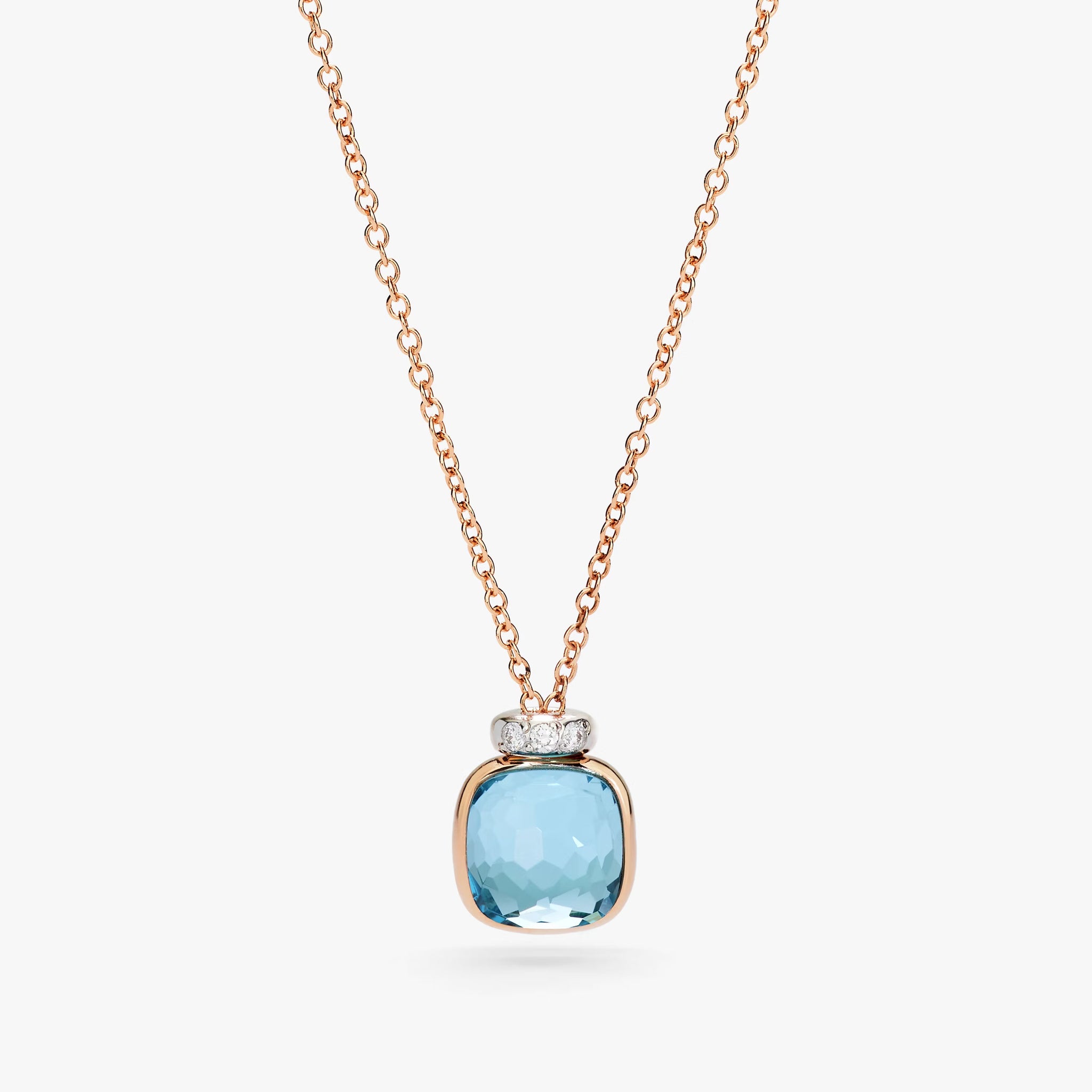 Pomellato Nudo Mini Necklace with Pendant-Sky Blue Topaz with diamonds