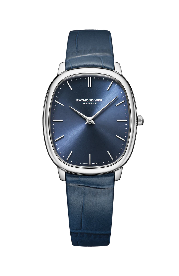 Bridging past and present, the toccata heritage timepieces embody nearly five decades of RAYMOND WEIL’s expertise in watchmaking. The graceful oval case, crafted in polished stainless steel, houses a quartz movement. A testament to the Maison’s dedication to Swiss accuracy and enduring reliability. The sunrayed blue dial captures light with subtle sophistication. Applied indexes and dauphine hands achieve perfect visual balance, reflecting the harmony between technical precision and aesthetic grace. Fitted with a blue genuine calf leather strap and a newly designed tongue buckle echoing the case’s shape, the toccata heritage offers both comfort and timeless character. With its slim profile and refined oval form, this creation celebrates the enduring dialogue between music and time that defines the Maison. A vibrant tribute to timeless elegance, where history is reinvented to engage in a dialogue with the now. This new interpretation blends timeless elegance with modernity, staying true to the visionary spirit of its founder, Mr. Raymond Weil: an elegant Swiss watchmaking, crafted with meticulous attention to detail.