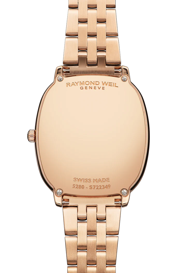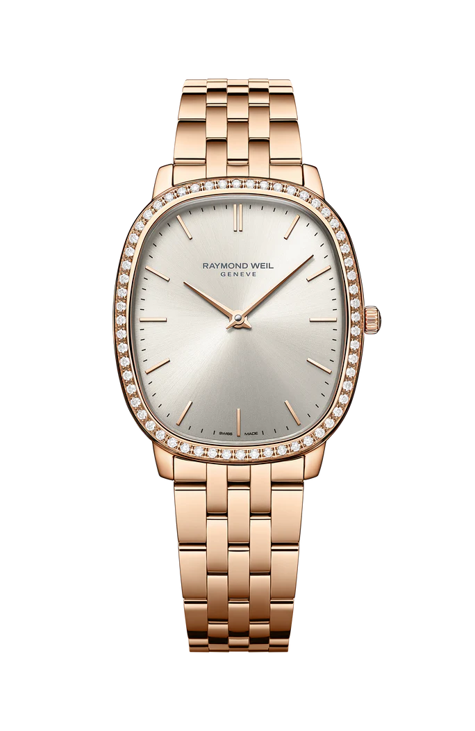 Raymond Weil Toccata Heritage Quartz full diamond bezel old silver dial on RG PVD Steel Bracelet -31mm x 36mm