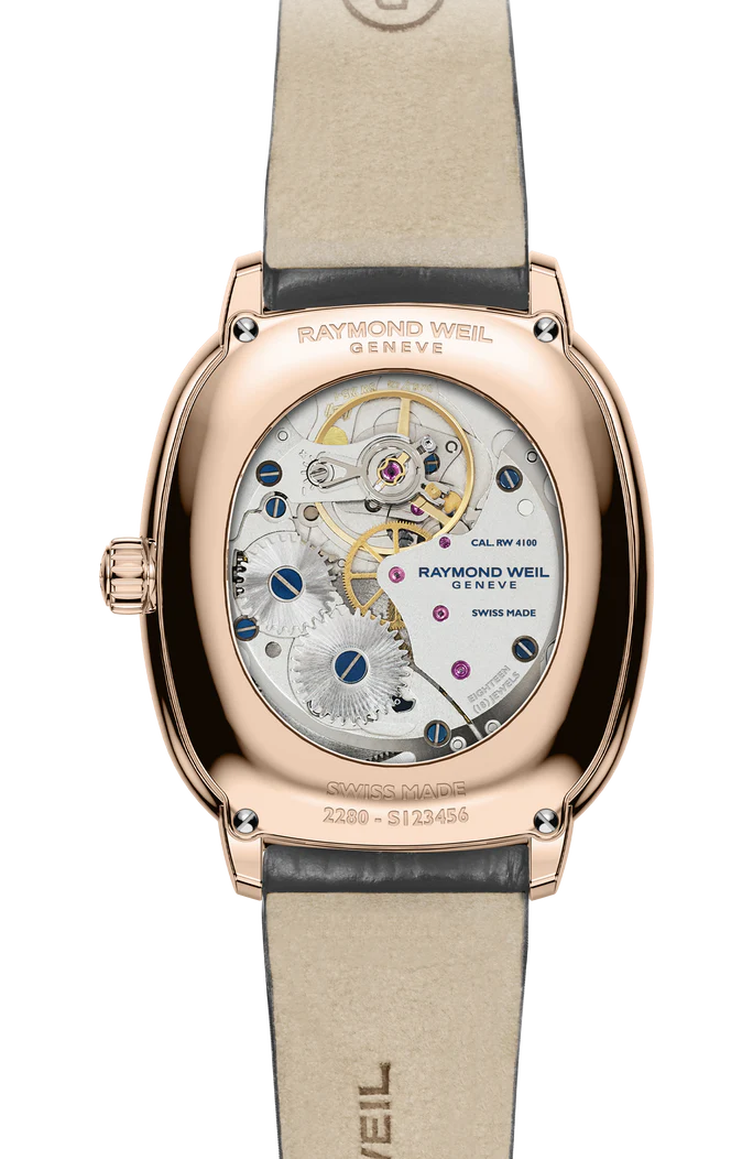 Description Bridging past and present, the toccata heritage embodies nearly five decades of RAYMOND WEIL’s savoir-faire in watchmaking. The thin oval case, crafted in polished stainless steel with rose gold PVD coating, houses the RW4100 mechanical movement with manual winding. A refined tribute to traditional Swiss craftsmanship, offering a 45-hour power reserve. The sunrayed dial reveals a subtle play of light, enhancing the collection’s understated elegance. Polished dauphine hands with newly designed counterweights and applied indexes achieve perfect visual balance, further highlighting the harmony between technical precision and aesthetic grace. A sapphire caseback reveals the meticulous finishing of the movement, recalling the artistry of 1970s horology. Fitted with a genuine calf leather strap and a newly designed tongue buckle echoing the case’s shape, the toccata heritage offers both comfort and timeless character. With its pure lines and refined oval form, this creation celebrates the enduring dialogue between music and time that defines the Maison. A vibrant tribute to timeless elegance, where history is reinvented to engage in a dialogue with the now. This new interpretation blends timeless elegance with modernity, staying true to the visionary spirit of its founder, Mr. Raymond Weil: an elegant Swiss watchmaking, crafted with meticulous attention to detail.
