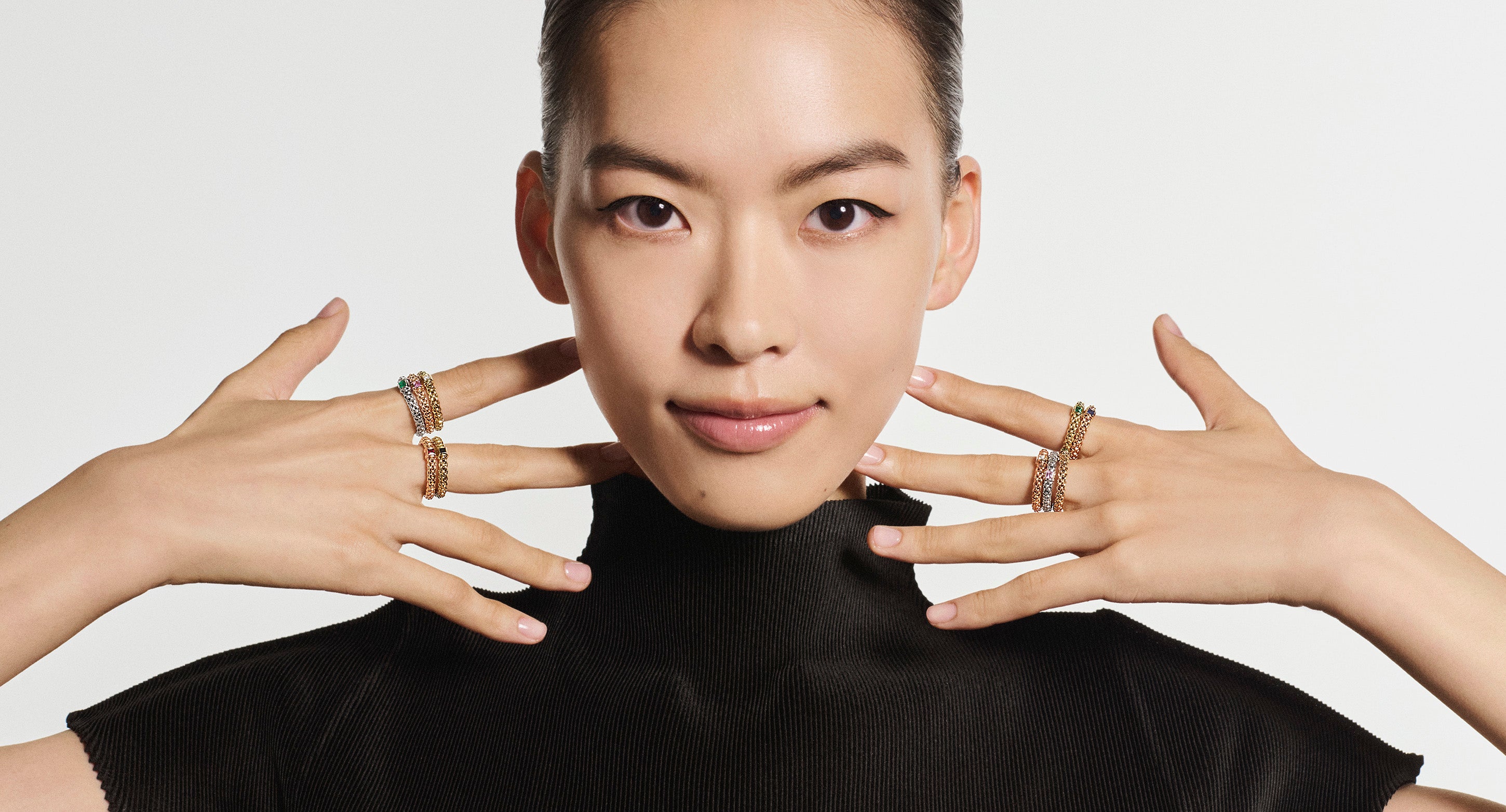 Petit Garden Libellule Ring in 18k Rose and White Gold with White and Champagne Diamonds Ring 18k Rose and White Gold White Diamonds: 0.38...