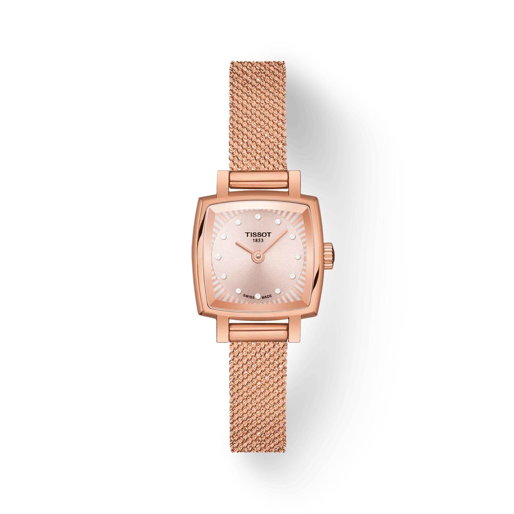 Beautiful things come in small packages - this stunning Lovely collection conveys the very essence of class with its discrete yet absolutely gorgeous mini-size and feminine case. Created as a tribute to Tissot petite ladies watches from the 60's, this perfectly formed watch with high-quality elements has a stylish square face, faceted thick glass that reminds the wearer of a diamond, and a sleeky polished and satinated case.