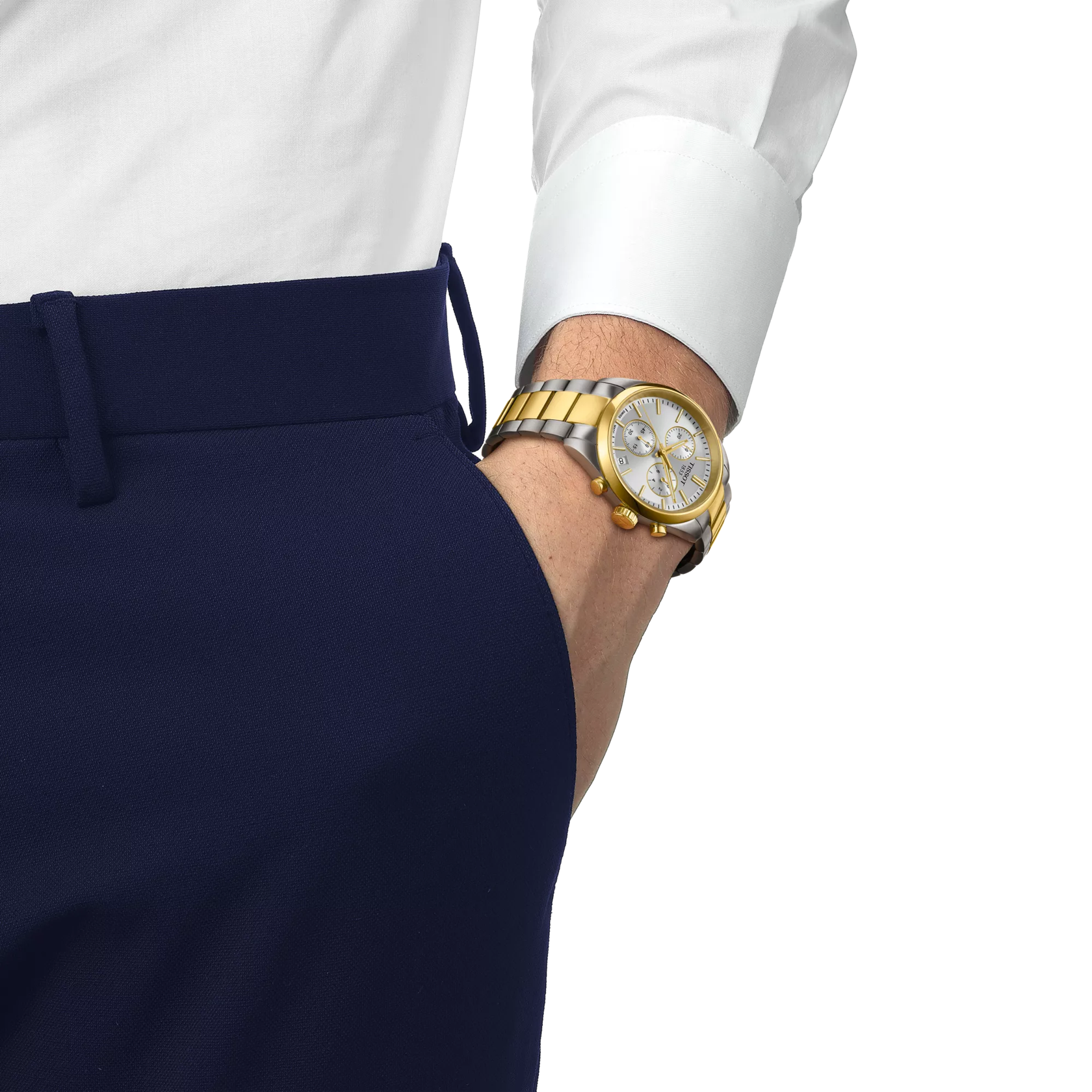 TISSOT PR 100 CHRONOGRAPH 2 Tones YG PVD QUARTZ 40MM Silver Dial