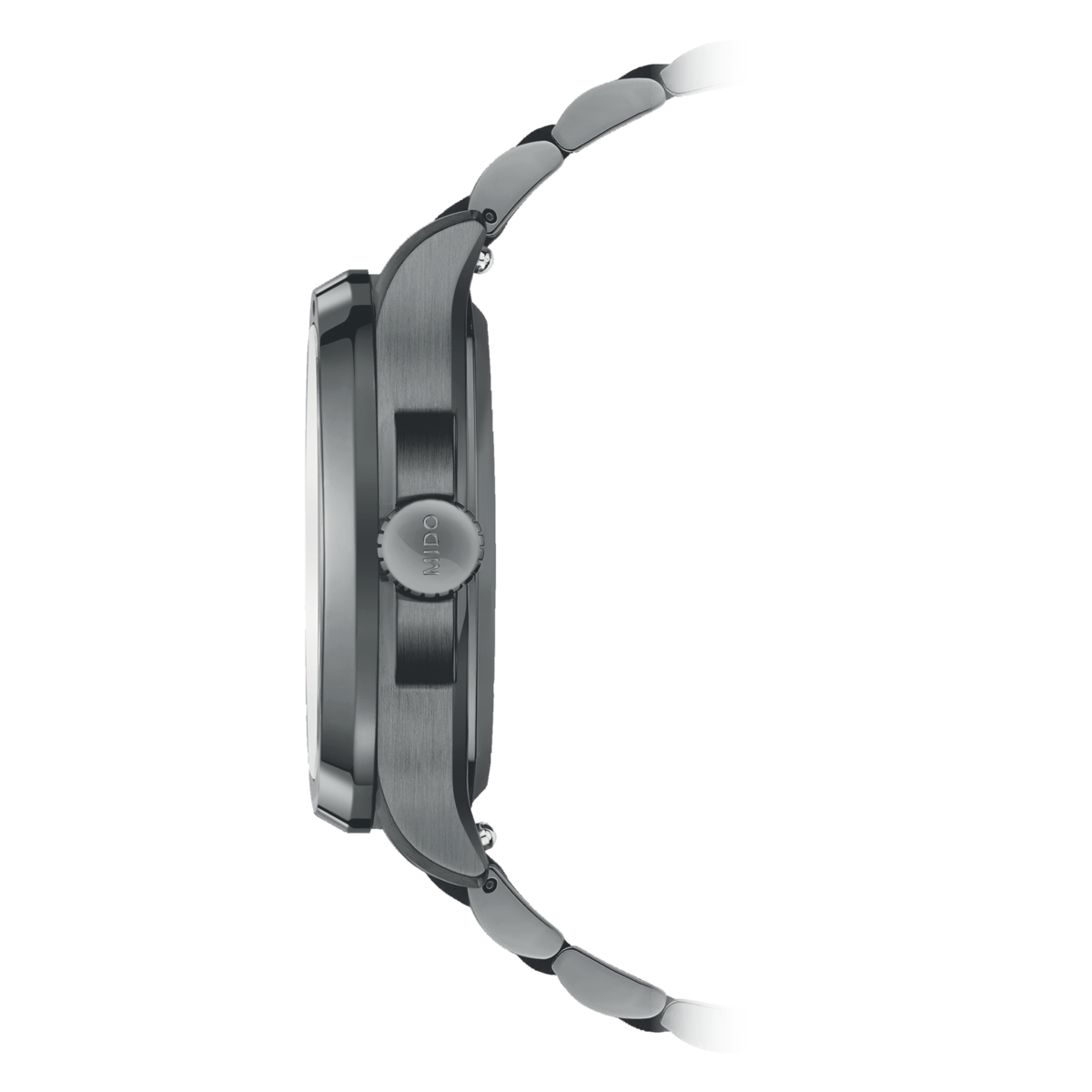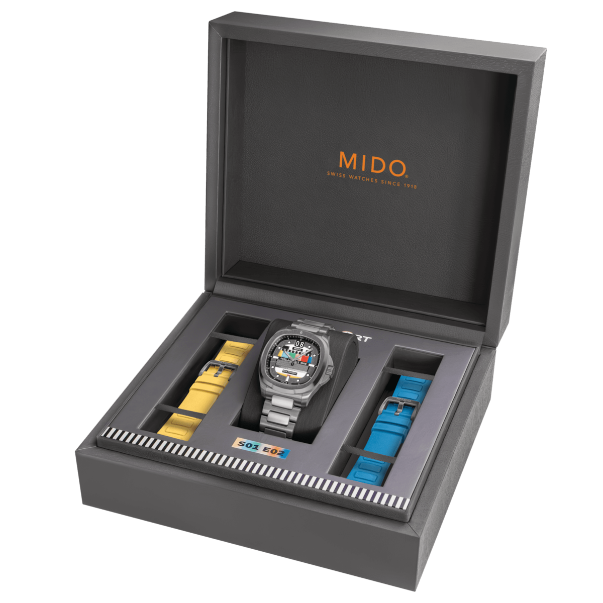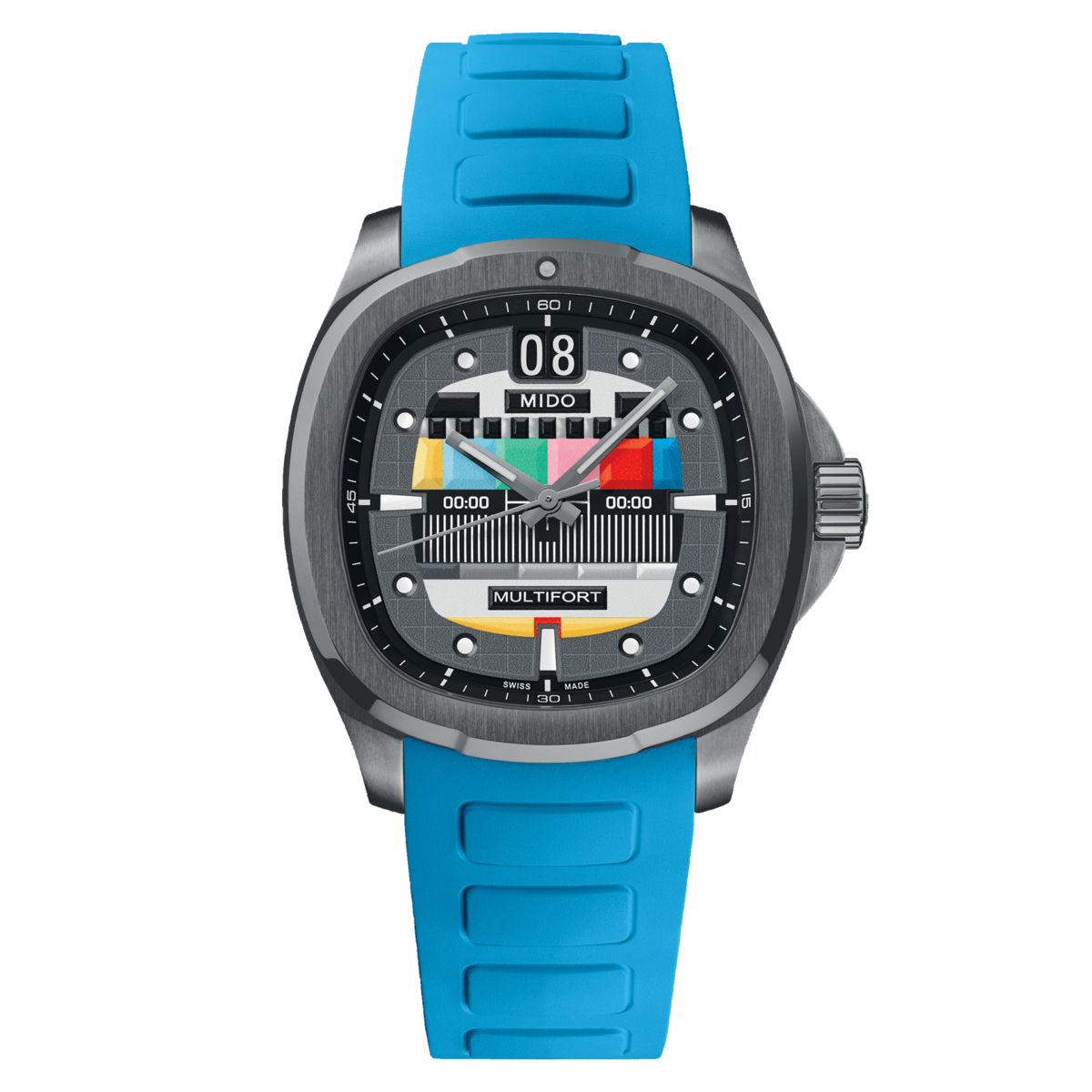A brilliant flashback! Born from MIDO's extraordinary heritage, the TV-shaped case returns to centre stage for the Multifort TV Big Date, as intense as it is precise, thanks to its formidable mechanical movement. The modern and dynamic design of this Swiss watch is highlighted by a striking dial and, along with its distinctive function: the BIG DATE at 12 o'clock. Its formidable latest-generation automatic movement, Caliber 80, is equipped with a high-tech balance spring in Nivachron™, which offers outstanding resistance to shocks and magnetic fields.